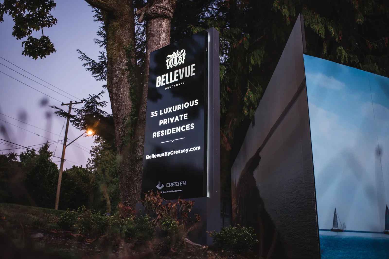 Client: Cressey, Bellevue Dundarave DevelopmentDesign: Analog DesignSign Specifications: Aluminum freestanding pylon sign with push through acrylic.