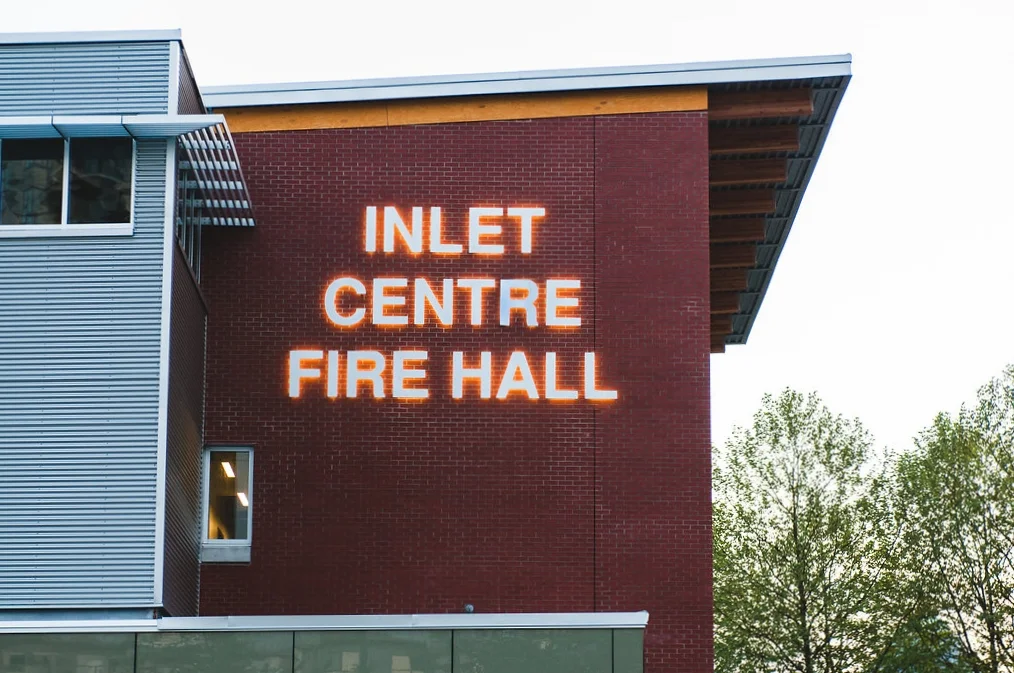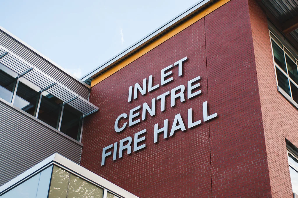Client: Inlet Centre Fire HallSign Specifications: Painted aluminum dimensional letters with halo-lit illumination. Mounted to brick wall with stand-off fasteners.