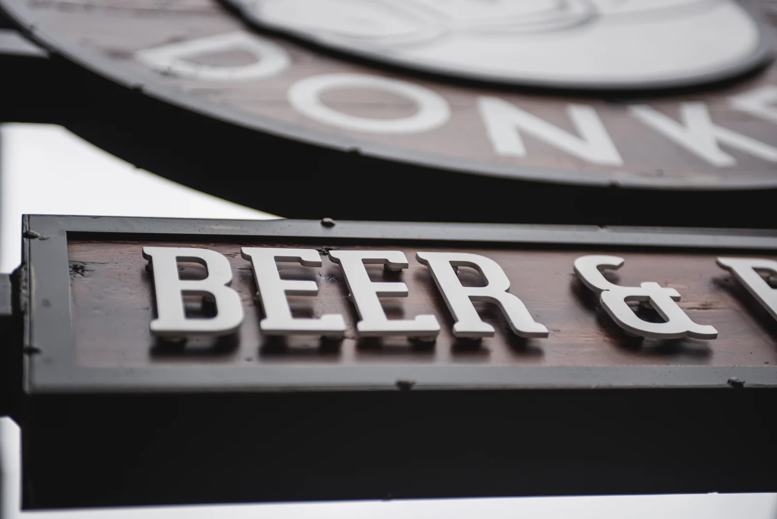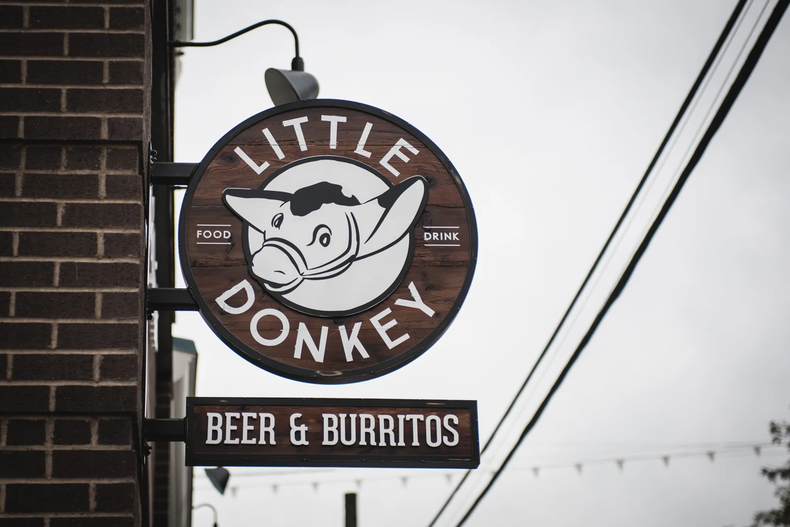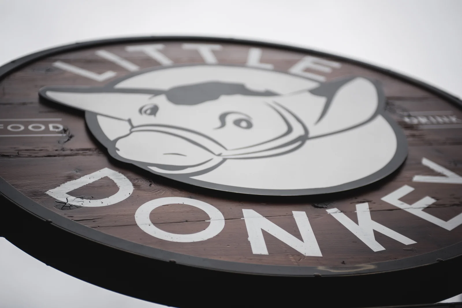 Client: Little Donkey Food & Drink, Fort Langley BC.Sign Design & Layout: TDH Experiential FabricatorsSign Specifications: Non-illuminated projecting sign with 100-year-old reclaimed wood and aluminum dimensional letters and hand painted accents.