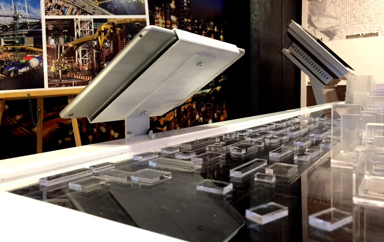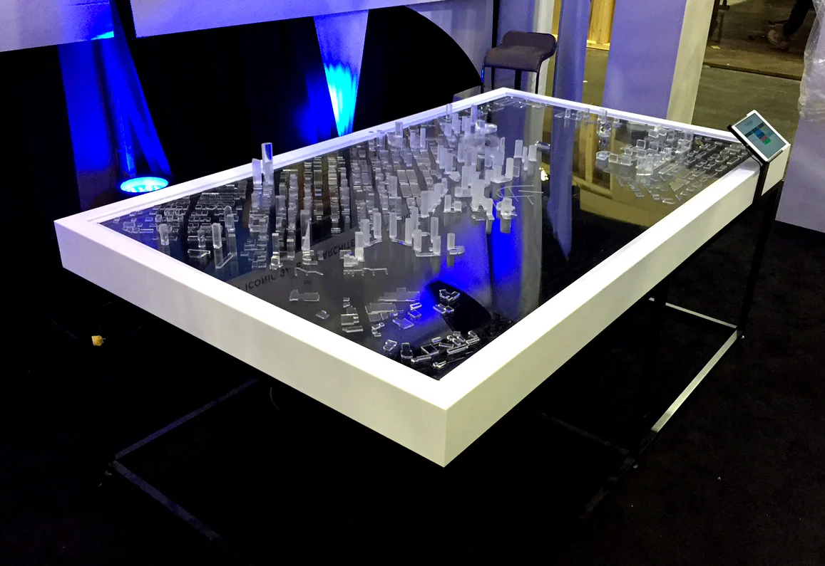 Client: Concord Model Display Table.Display Specifications: Digital LED display with acrylic shapes applied to acrylic panel.